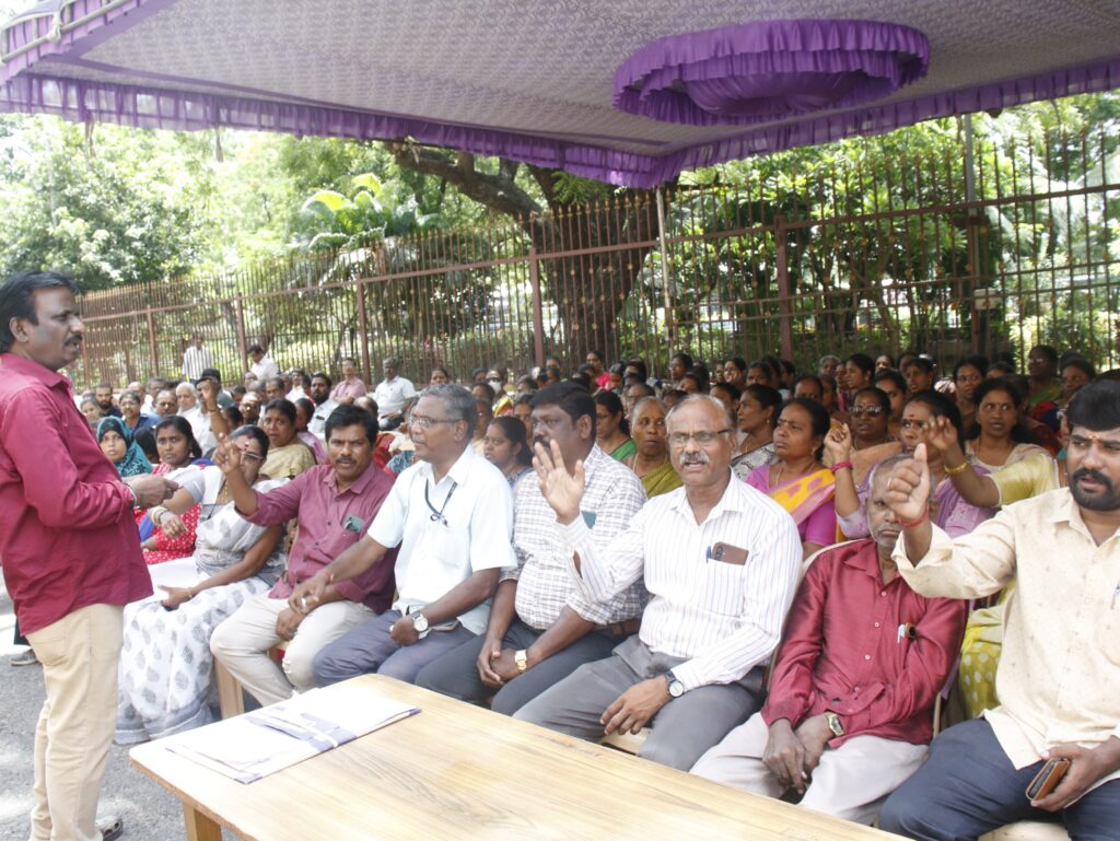 சென்னை பல்கலைக்கழக அலுவலர்களின் ஊதியத்தை குறைக்க எடுக்கப்படும் நடவடிக்கையை கைவிடவேண்டும் என தமிழக அரசுக்கு வேண்டுகோள் விடுத்தனர் இந்த மாபெரும் உள்ளுறுப்பு போராட்டத்தில் நூற்றுக்கும் மேற்பட்டோர் கலந்து கொண்டனர்.