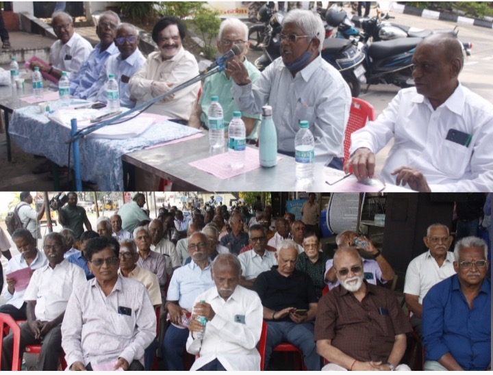 இந்த தர்ணா போராட்டத்தில் 65 வயதிலிருந்து 85 வயதுக்குட்பட்ட அதிகாரிகள் 50க்கும் மேற்பட்டோர் காலை முதல் தர்ணா போராட்டத்தில் ஈடுபட்டு வருகின்றனர்..