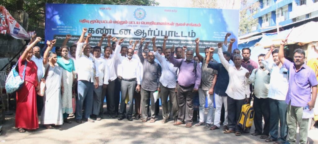சென்னை மாவட்ட ஆட்சியர் அலுவலகம் அருகில் பதிவு மூப்பு பட்டம் மற்றும் பட்டய பொறியாளர்கள் நல சங்கத்தின் சார்பில் முக்கிய கோரிக்கைகளை வலியுறுத்தி மாநிலத் தலைவர் பொறியாளர் வி. சிவகுமார் அவர்கள் தலைமையில் கண்டன ஆர்ப்பாட்டம் நடைபெற்றது.