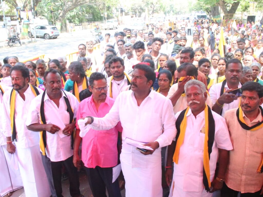 வண்ணார் சமூகத்திற்கு சொந்தமான நிலங்கள், கோயில்கள், மடங்கள் போன்ற ஆக்கிரமிப்பிற்கு உள்ளாகி உள்ள இடங்களை மீட்டு எங்கள் சமூகத்திடம் ஒப்படைக்க ஆவண செய்ய கோரியும் சமூகத்தை மேம்படுத்த தனி நல வாரியம் ஒன்றினை அமைக்க வேண்டி ஆர்ப்பாட்டம் நடைபெற்றது .
