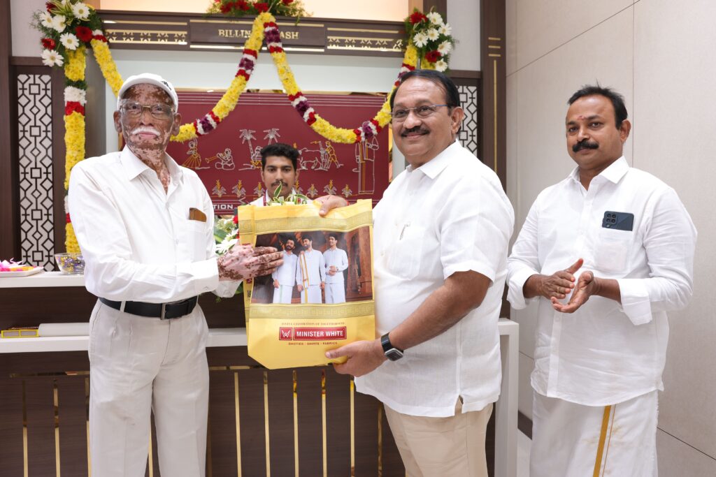 Conveniently located at Thiruvottriyur High Road, Toll Gate (Near Tollgate Metro Station), Chennai – 600019, the new outlet brings Minister White’s signature range of dhotis, shirts, colourful matching Shirt–Dhoti combos, and fine fabrics closer to the vibrant communities of North Chennai.