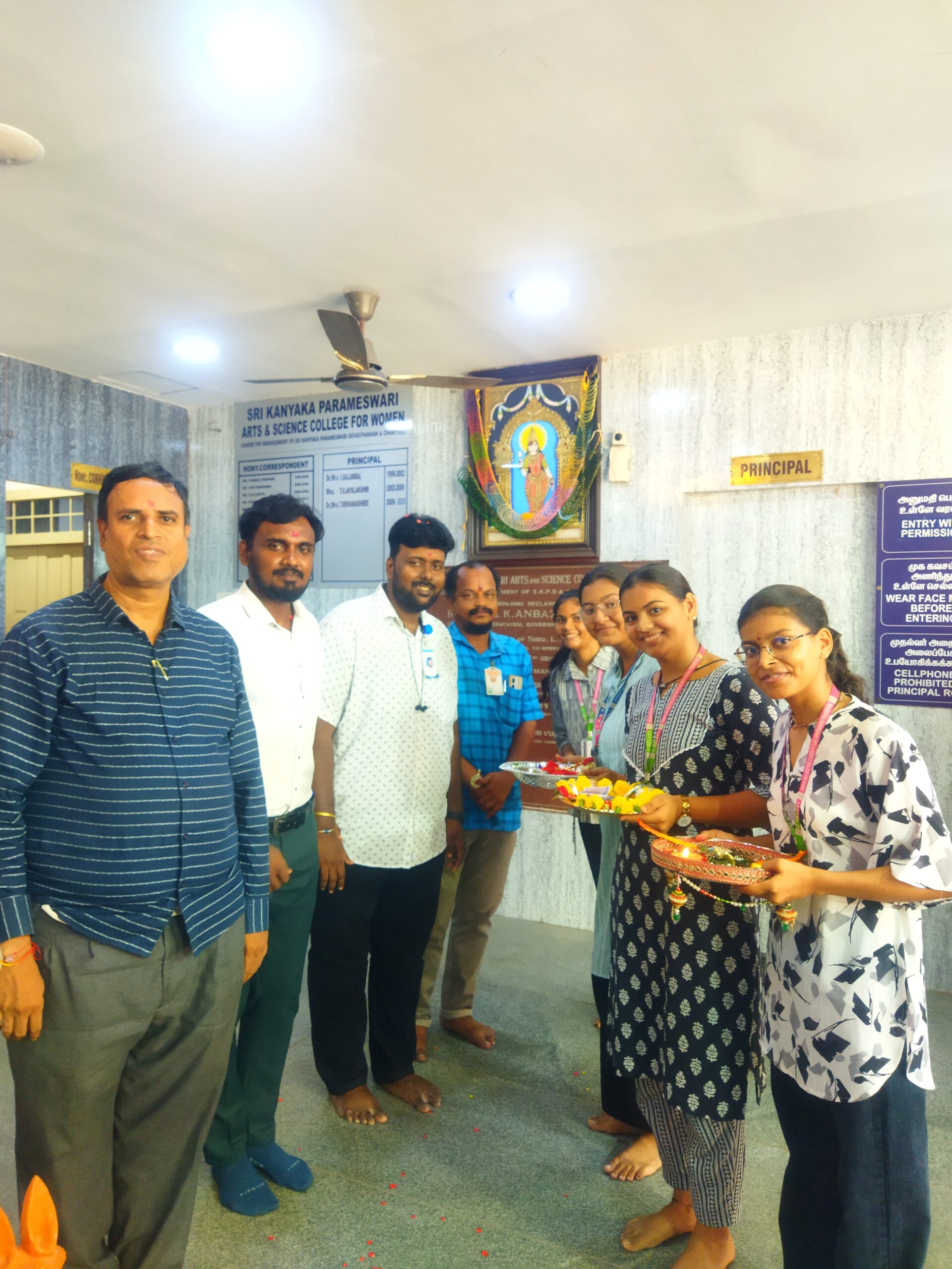 The Hindi Department of Sri Kanya Parameswari Arts and Science College organized a Rakhi-making competition on the occasion of Raksha Bandhan. The event saw enthusiastic participation from students, who showcased their creativity by designing and crafting beautiful rakhis using threads, flowers, and other decorative items.