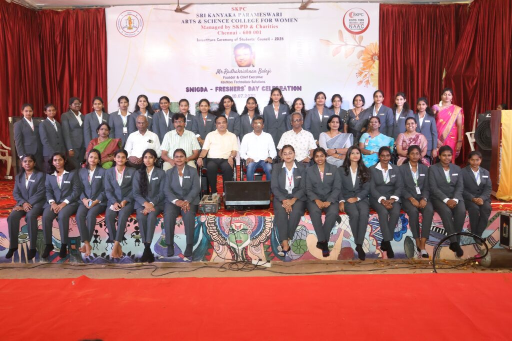 Nakshatra Students ‘ Council of Sri Kanyaka Parameswari Arts & Science College for Women organized NAKSHATRA STUDENTS’ COUNCIL INAUGURATION and KALALAAYA FINE ARTS ASSOCIATION celebrated SNIGDA (Cultural Fiesta) for first years on 10.07.2025 in the college premises. MR.RADHAKRISHNAN BALAJI FOUNDER & CHIEF EXECUTIVE OF KAVNIYA TECHNOLOGY SOLUTIONS was the Chief Guest of the day.. The Welcome Address was delivered by Hony Correspondent Vootukuru Sarath Kumar, Dr.M.Lakshmi gave the Chief Guest Introduction and Nakshatra Students’ Council Vice President Ms.V.Banu presented the Nakshatra Students’ Council report.